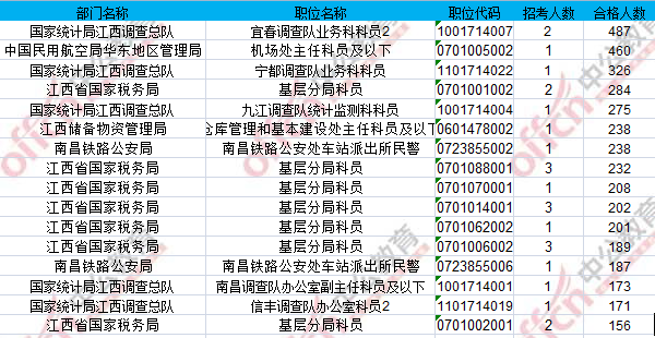 報(bào)名通過審核人數(shù)前十的職位主要集中在江西省國家稅務(wù)局、國家統(tǒng)計(jì)局江西調(diào)查總隊(duì)具體信息如下: