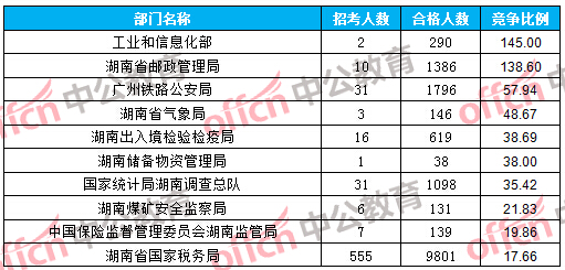 通過審核人數(shù)前三位的部門依次是:湖南省國家稅務(wù)局、廣州鐵路公安局、湖南省郵政管理局,三部門通過審核總?cè)藬?shù)為12983人,占通過審核總?cè)藬?shù)的80.69%。