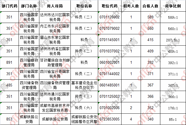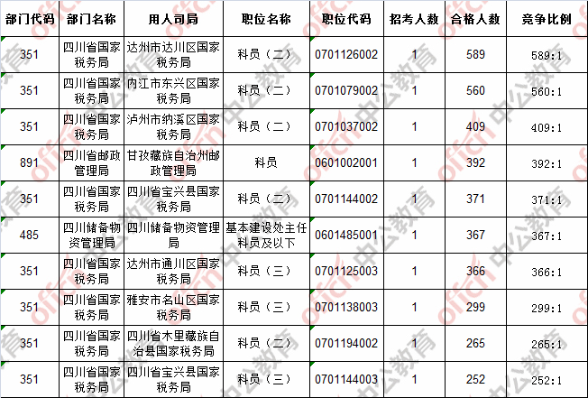首日?qǐng)?bào)名通過審核人數(shù)前十的職位主要集四川省國家稅務(wù)局等部門,具體信息如下: