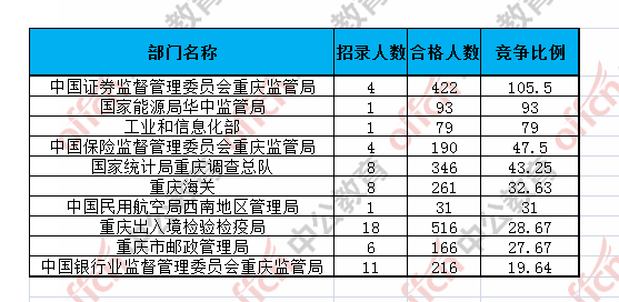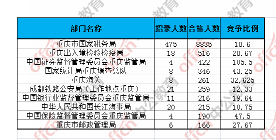 為幫助廣大考生更清晰的了解今日報名情況,重慶中公網(wǎng)校整理了審核通過人數(shù)前十位的部門以及競爭比例最激烈的十大部門,供廣大考生參考:
