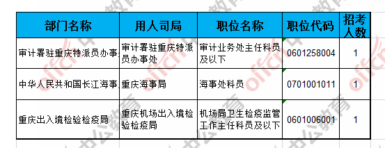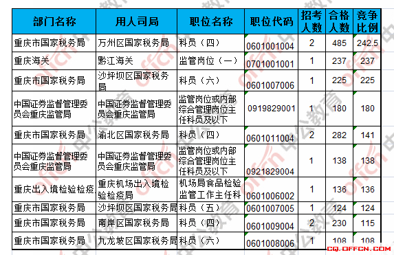 報名通過審核人數(shù)前十的職位主要集中在萬州區(qū)國家稅務(wù)局、渝北區(qū)國家稅務(wù)局、黔江海關(guān)等部門,具體信息如下: