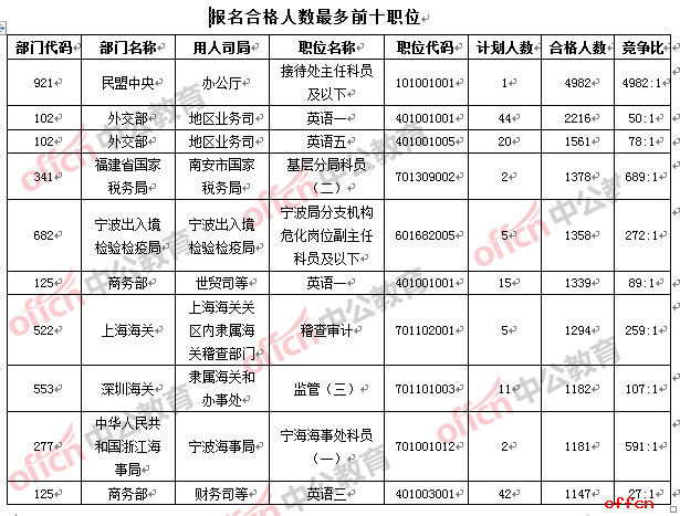 【截至22日8時】2017國考報名人數(shù)統(tǒng)計:最熱職位4982:1 民盟熱度遠(yuǎn)超去年最熱部門