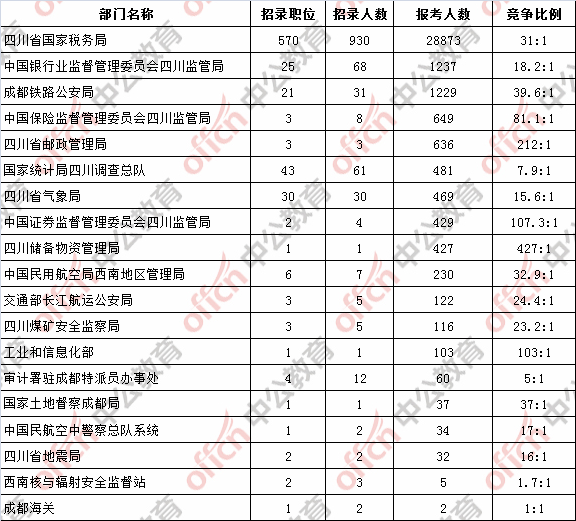 為幫助廣大考生更清晰的了解今日報名情況,四川中公教育整理了已審核通過人數(shù)的部門,此數(shù)據(jù)供廣大考生參考: