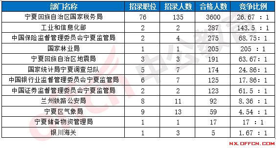2017國考寧夏地區(qū)各部門報(bào)考情況