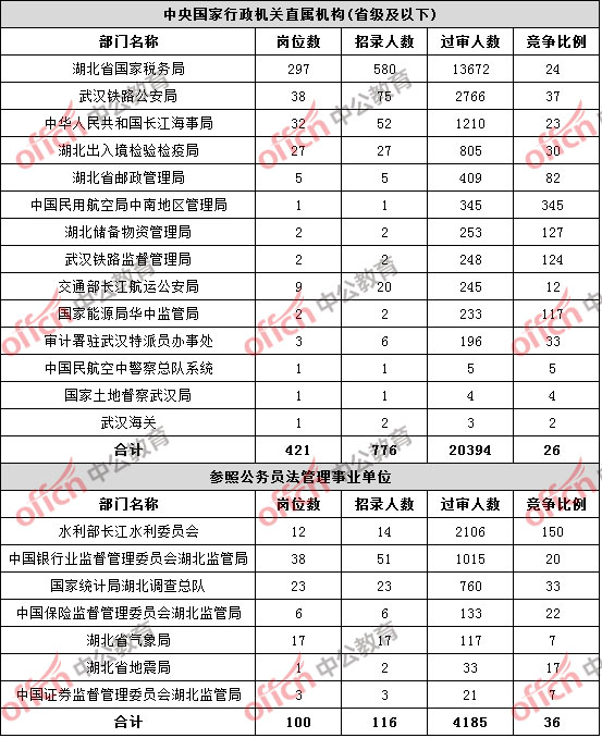 【截至22日16時】2017國考湖北地區(qū)24579人過審 最熱職位618:1
