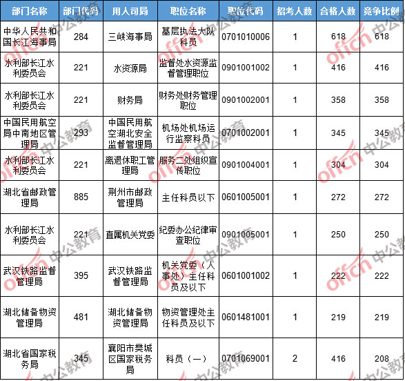 截止到22日16時,競爭比例和報考人數(shù)最多的職位仍然為中華人民共和國長江海事局基層執(zhí)法大隊科員職位,招錄1人,截止到22日16時通過人數(shù)為618人!