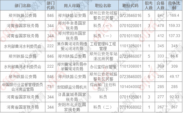 報(bào)名通過(guò)審核人數(shù)排名前列的職位主要集中在鄭州鐵路公安局、河南省國(guó)家稅務(wù)局,水利部黃河水利委員會(huì),具體信息如下: