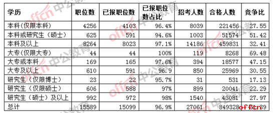 專業(yè)要求“大專(僅限大專)”的職位報考率達100%,競爭比近70:1。