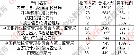 截至23日16時(shí),國(guó)家公務(wù)員考試報(bào)名第九天,據(jù)內(nèi)蒙古中公網(wǎng)校統(tǒng)計(jì),2017國(guó)考招錄職位中工作地點(diǎn)在內(nèi)蒙古的職位通過(guò)審核總?cè)藬?shù)為33548,共有22個(gè)職位無(wú)人通過(guò)審核,平均競(jìng)爭(zhēng)比例為36.9:1。