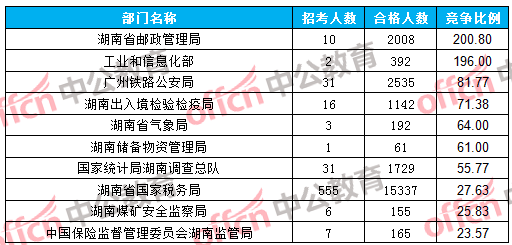 為幫助廣大考生更清晰的了解今日報名情況,湖南中公網(wǎng)校整理了審核通過人數(shù)前十大部門以及競爭比例最激烈的十大部門,供廣大考生參考: