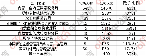 為幫助廣大考生更清晰的了解今日報名情況,內(nèi)蒙古中公網(wǎng)校整理了審核通過人數(shù)前十位的部門,供廣大考生參考: