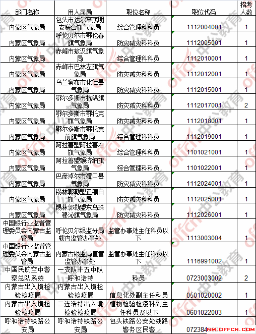 截止到24日8時,工作地點(diǎn)在內(nèi)蒙古19個職位無人報考。具體職位如下: