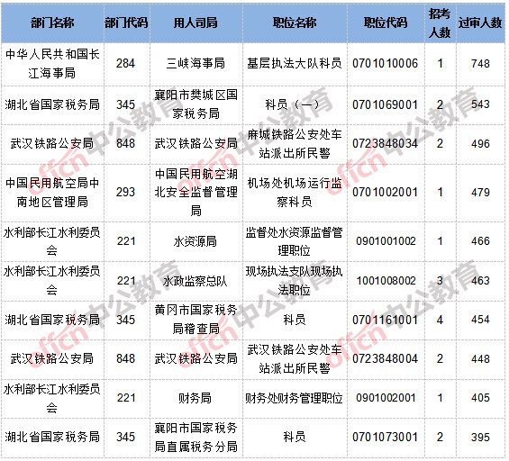 報(bào)名通過審核人數(shù)前十的職位