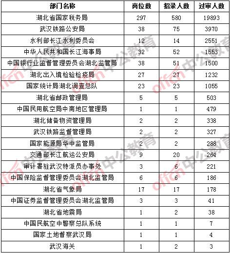 截止到10月24日8時(shí),湖北地區(qū)各部門通過審核人數(shù)如下: