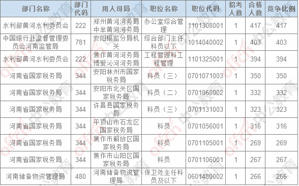 報名通過審核人數(shù)排名前列的職位主要集中在鄭州鐵路公安局、河南省國家稅務(wù)局,水利部黃河水利委員會,具體信息如下: