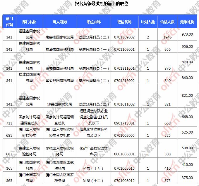 截止到24日8時,競爭比例的職位為福建省國家稅務局南安市國家稅務局基層分局科員(二)一職,招錄2人,截止到24日8時通過人數(shù)為1946人