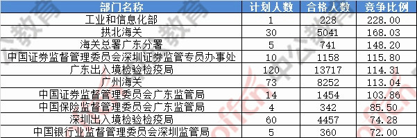 為幫助廣大考生更清晰的了解今日報名情況,廣東中公網(wǎng)校整理了審核通過人數(shù)前十位的部門以及競爭比例最激烈的十大部門,供廣大考生參考: