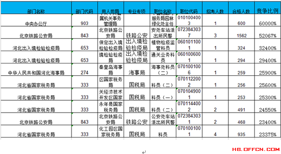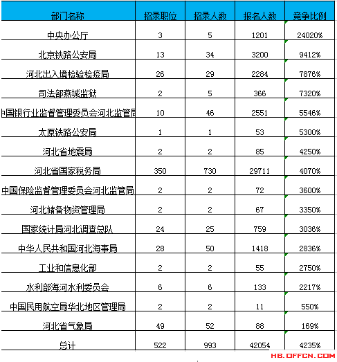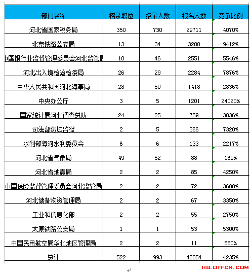 截止24日17:30,2017國(guó)考河北地區(qū)所有職位報(bào)名情況