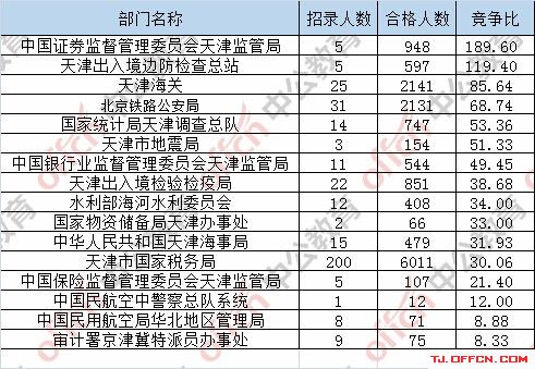 為幫助廣大考生更清晰的了解今日報(bào)名情況,天津中公網(wǎng)校整理了審核通過人數(shù)前五位的部門以及競爭比例最激烈的五大部門,供廣大考生參考: