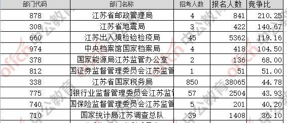 截至24日17:30時,通過審核人數(shù)前三位的部門依次是:江蘇省國家稅務(wù)局、江蘇出入境檢驗(yàn)檢疫局、中國銀行業(yè)監(jiān)督管理委員會江蘇監(jiān)管局,三部門通過審核總?cè)藬?shù)達(dá)45931人,占通過審核總?cè)藬?shù)的87.8%。