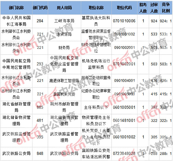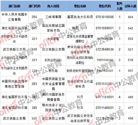 【24日17:30】2017國考報名湖北40041人過審,最熱職位924:1
