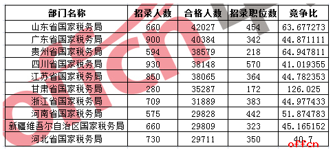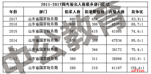 從2011國(guó)考至今的報(bào)考情況來看,山東國(guó)稅局一直問鼎國(guó)考,連續(xù)7年奪得國(guó)家公務(wù)員考試報(bào)考人數(shù)最多的部門,首先這與其招考人數(shù)較多有一定關(guān)系,同時(shí)山東的地理環(huán)境優(yōu)勢(shì)以及接受的教育都有一定關(guān)系。
