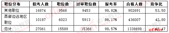 盡管西部邊遠(yuǎn)地區(qū)部分職位條件艱苦,待遇較低,不是大家青睞的對象,但國家連續(xù)幾年招錄政策向基層傾斜,比如降低門檻、拉低分?jǐn)?shù)線、調(diào)節(jié)年齡等諸多優(yōu)惠政策,這些政策出臺發(fā)揮了基層導(dǎo)向作用,西部邊遠(yuǎn)地區(qū)職位的報考率達(dá)到了98.17%,基本與其他職位報考率持平,說明基層公務(wù)員隊伍將實現(xiàn)“招賢納士”的愿望。