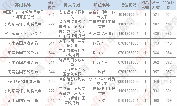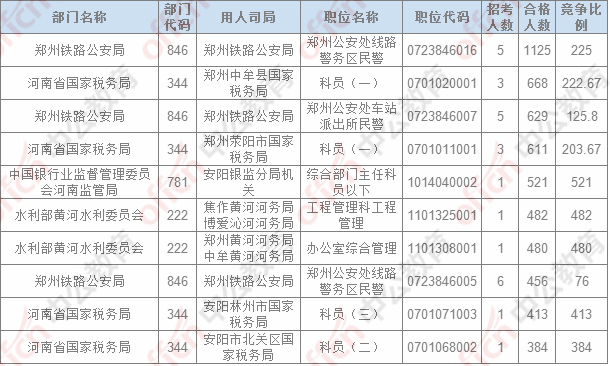 報(bào)名通過(guò)審核人數(shù)排名前列的職位主要集中在鄭州鐵路公安局、河南省國(guó)家稅務(wù)局,中國(guó)銀行業(yè)監(jiān)督管理委員會(huì)河南監(jiān)管局,具體信息如下: