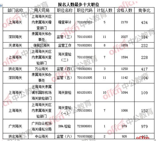 2017國考報名結(jié)束:海關(guān)過審46183人 平均競爭比59:1