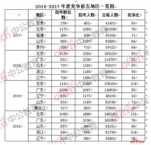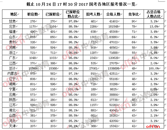 2017國考報(bào)名各地排行榜 中西部邊遠(yuǎn)地區(qū)競爭激烈“白熱化”