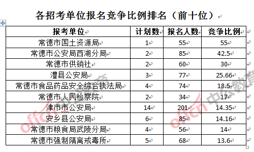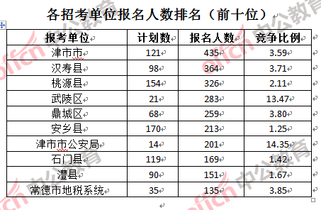 為幫助廣大考生更清晰的了解報名情況,中公教育整理了婁底市各招考單位的報名人數(shù)排名以及競爭比例排名,供廣大考生參考: