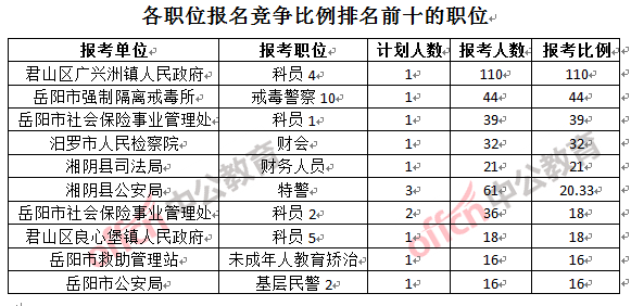 一、岳陽(yáng)公務(wù)員報(bào)名人數(shù):各職位分析