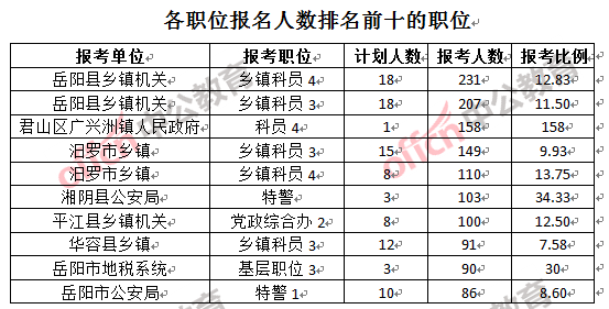 一、岳陽公務(wù)員報(bào)名人數(shù):各職位分析