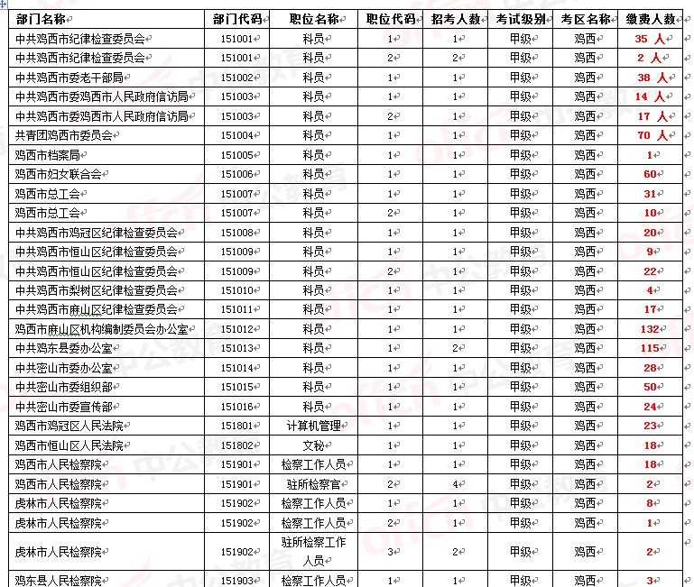 中公網(wǎng)校為參加2014年黑龍江省公務(wù)員考試的考生整理截止至5月18日早9點(diǎn)的部分繳費(fèi)人數(shù),并且在更新中。。。由于報(bào)名網(wǎng)站報(bào)名情況每30分鐘統(tǒng)計(jì)一次,數(shù)據(jù)可能會(huì)有細(xì)微差異,所有數(shù)據(jù)僅供大家參考。