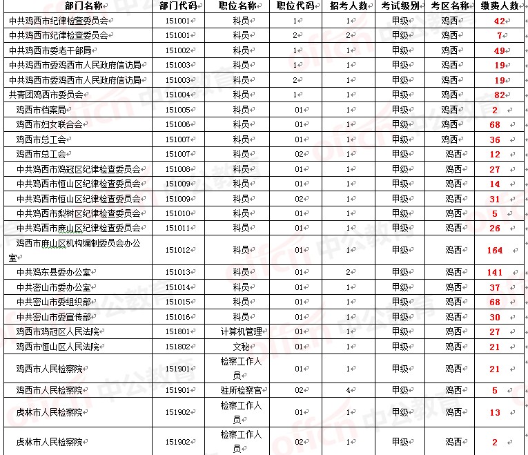 中公網(wǎng)校為參加2014年黑龍江省公務(wù)員考試的考生整理截止至5月19日部分繳費(fèi)人數(shù),并且在更新中。。。由于報(bào)名網(wǎng)站報(bào)名情況每30分鐘統(tǒng)計(jì)一次,數(shù)據(jù)可能會(huì)有細(xì)微差異,所有數(shù)據(jù)僅供大家參考。