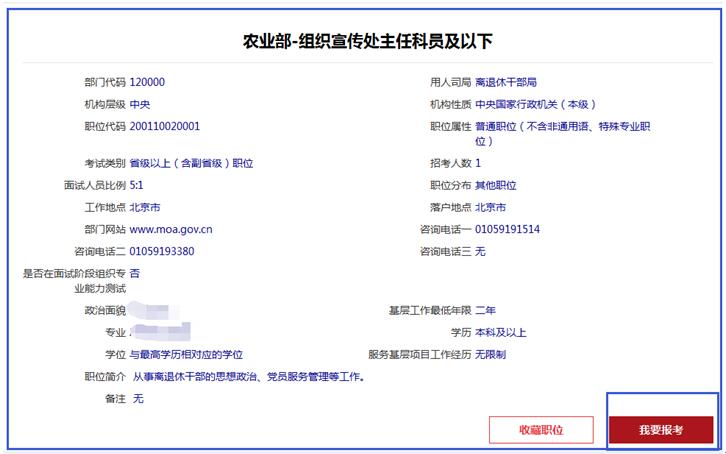 選好職位以后,可以點擊“我要報考”,如果還有其他選項的職位,可以點擊“收藏職位”。