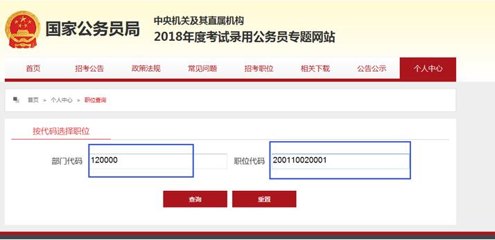 10、如圖所示我們選擇合適的職位進行報名。首先要填寫部門代碼和職位代碼。