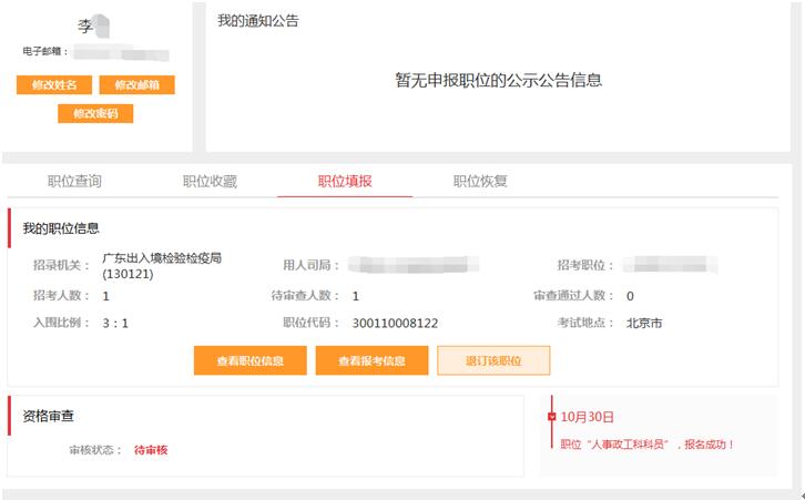 14、可以查看到報名職位以及報考單位的詳細(xì)信息。