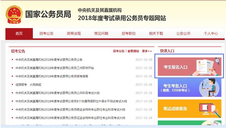 首先打開(kāi)中央機(jī)關(guān)及其直屬機(jī)構(gòu)2018考試錄用公務(wù)員專題信息網(wǎng)頁(yè)http://bm.scs.gov.cn/pp/gkweb/nps/apply/ui/business/home/gkhome.html?examkey=20180011