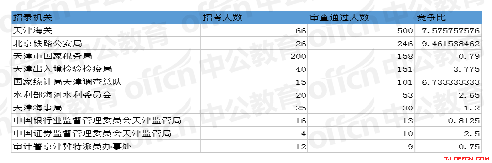截止到31日18時,通過審核人數(shù)前三位的部門依次是:天津海關(guān)、北京鐵路公安局、天津市國家稅務(wù)局,三部門通過審核總?cè)藬?shù)達(dá)904人。