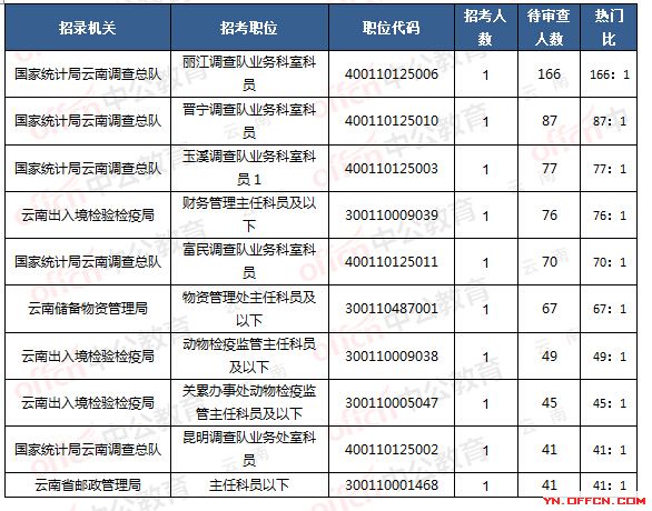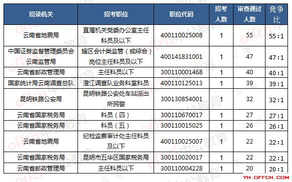 報名通過審核通過人數(shù)前十的職位
