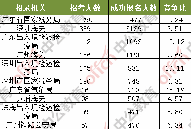 為幫助廣大考生更清晰的了解今日?qǐng)?bào)名情況,中公網(wǎng)校整理了審核通過(guò)人數(shù)前十位的部門(mén)以及競(jìng)爭(zhēng)比例最激烈的十大部門(mén),供廣大考生參考: