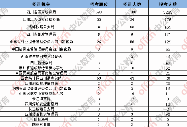 為幫助廣大考生更清晰的了解今日?qǐng)?bào)名情況,四川中公教育整理了已審核通過人數(shù)的部門,此數(shù)據(jù)供廣大考生參考: