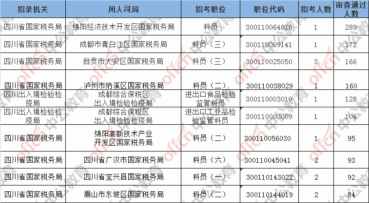 第三日?qǐng)?bào)名通過審核人數(shù)前十的職位主要集四川省國(guó)家稅務(wù)局等部門,具體信息如下: