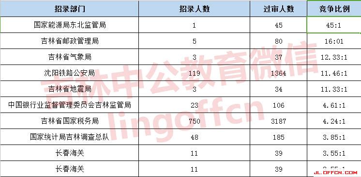 為幫助廣大考生更清晰的了解今日報名情況,中公網(wǎng)校整理了審核通過人數(shù)前十位的部門以及競爭比例最激烈的十大部門,供廣大考生參考: