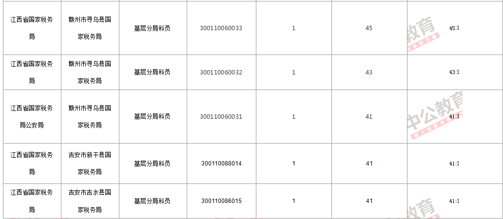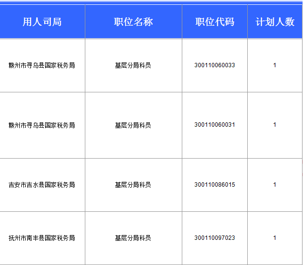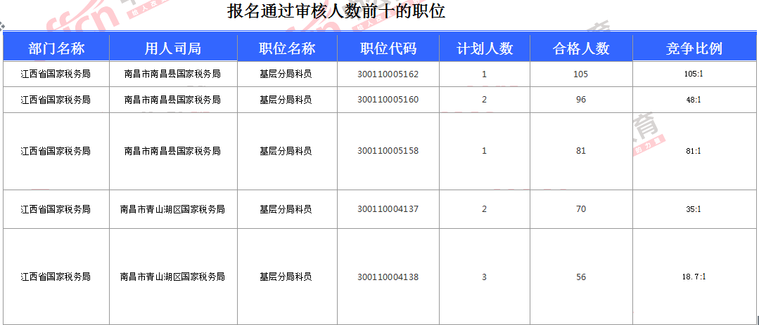 報(bào)名通過(guò)審核人數(shù)前十的職位主要集中在江西省國(guó)家稅務(wù)局這個(gè)部門,具體信息如下: