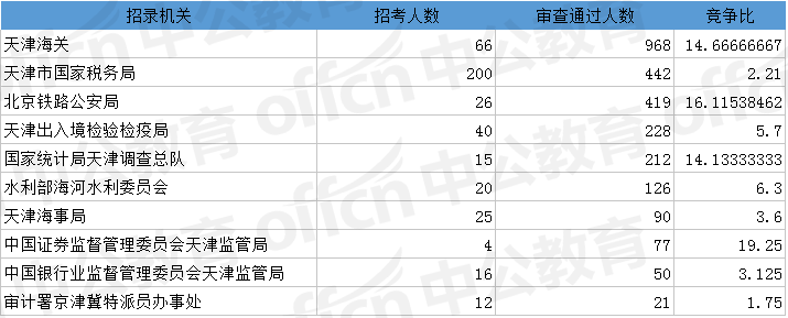 截止到2日09時,通過審核人數(shù)前三位的部門依次是:天津海關、天津市國家稅務局、北京鐵路公安局,三部門通過審核總人數(shù)達1829人。