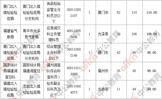 報(bào)名通過(guò)審核人數(shù)前十的職位主要集中在廈門(mén)出入境檢驗(yàn)檢疫局、國(guó)家統(tǒng)計(jì)局福建調(diào)查總隊(duì)、廈門(mén)海關(guān),具體信息如下: