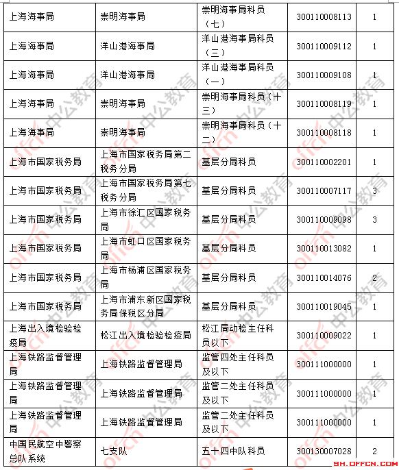 截止到2日16時(shí),競爭比例的職位為上海市國家稅務(wù)局上海市長寧區(qū)國家稅務(wù)局基層分局科員一職,招錄2人,截止到2日16時(shí)通過人數(shù)為920人。國考各崗位歷年工資待遇資訊群306289279報(bào)名通過審核人數(shù)前十的職位主要集中在上海市國家稅務(wù)局,上海海關(guān)等部門,具體信息如下: