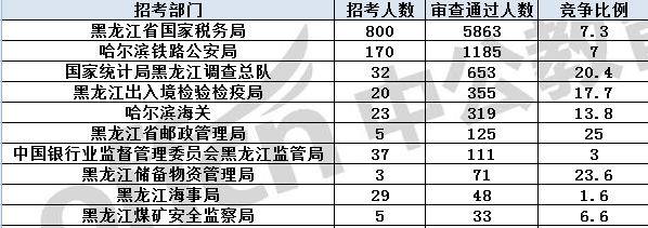報名通過審核人數(shù)前十的職位主要集中在黑龍江省國家稅務(wù)局、國家統(tǒng)計局黑龍江調(diào)查總隊(duì)、黑龍江出入境檢驗(yàn)檢疫局等部門,具體信息如下: